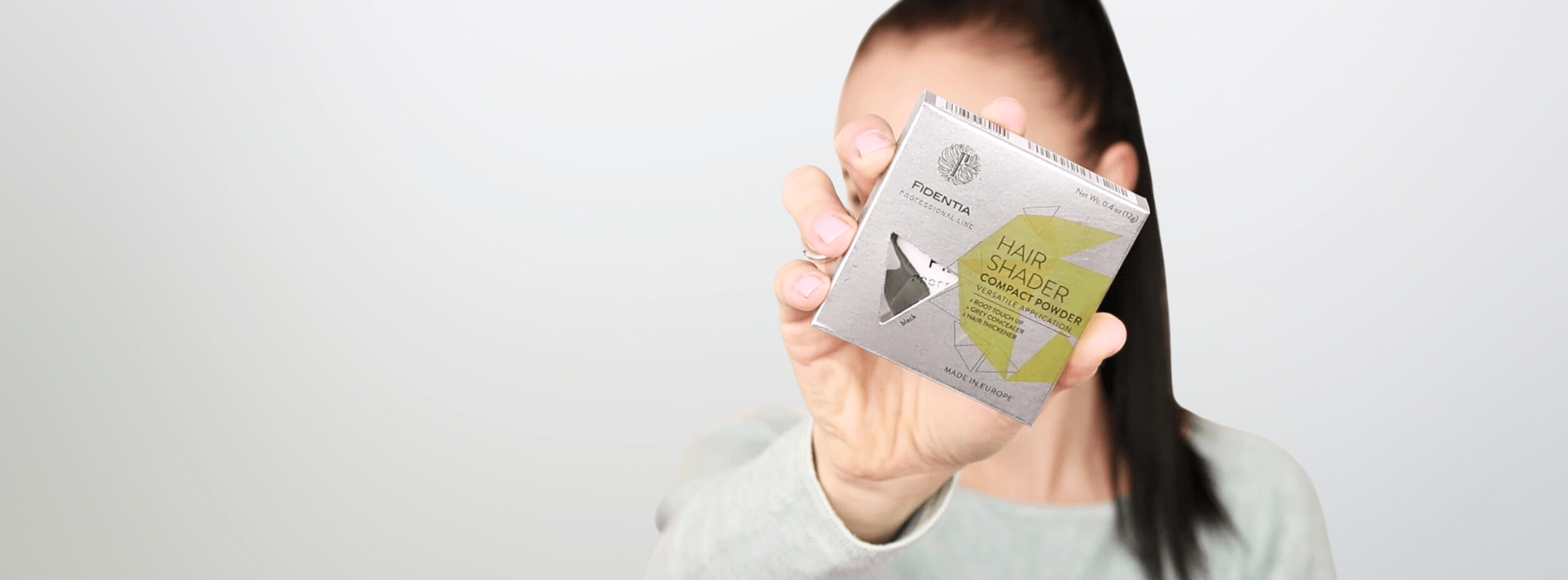 Especially people with hair problems benefit from using the Fidentia hair shader in two ways. The hair concealer is colored pigment powder that is applied to the hair and scalp with a sponge. It is more compact and lasts much longer than, for example, make-up powder or normal eye shadow. By applying the hair shader, unsightly, regrowing hairlines and gray hair can be concealed. In addition, the user has an effective and unobtrusive method of hair thickening available, which can also be used as a supplement to the hair fibers .
