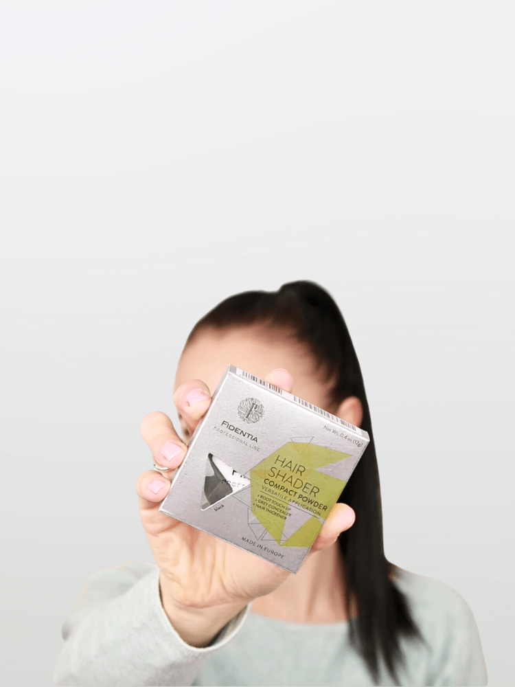 When applying the Fidentia hair shader, spread fine powder pigments over the scalp and hairline. These not only reliably cover areas of the scalp that shimmer through, but also envelop individual hairs, making them appear fuller overall. By coloring barely visible, light downy hairs, many users have the impression that they are discovering additional hairs where there were none before. It is important for a natural look that the hair concealer is applied more discreetly towards the hairline and thoroughly blended with the sponge. In this way, striking contrasts on the scalp are avoided and the hair appears fuller in a natural way.