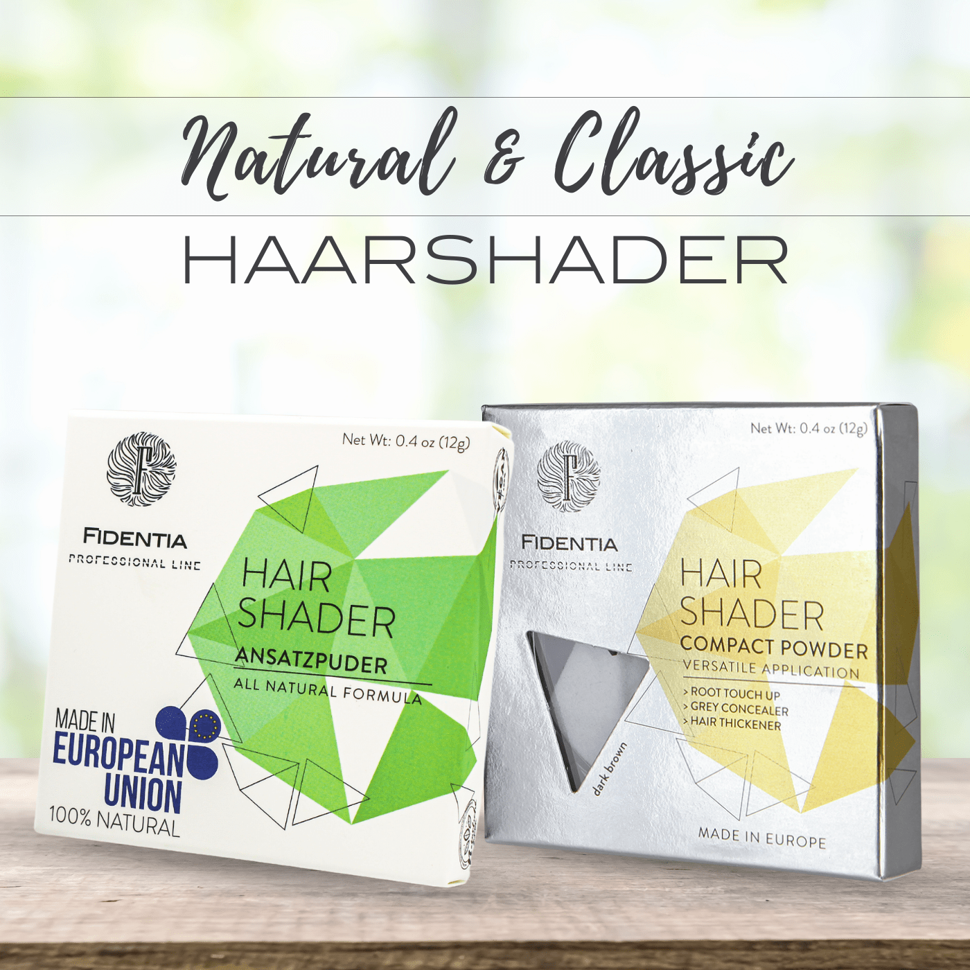 Especially people with hair problems benefit from using the Fidentia hair shader in two ways. The hair concealer is colored pigment powder that is applied to the hair and scalp with a sponge. It is more compact and lasts much longer than, for example, make-up powder or normal eye shadow. By applying the hair shader, unsightly, regrowing hairlines and gray hair can be concealed. In addition, the user has an effective and unobtrusive method of hair thickening available, which can also be used as a supplement to the hair fibers .